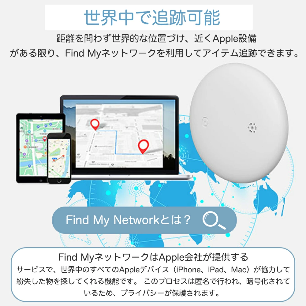 | 建議要點 | [無需單獨下載應用程式] 使用 iPhone、iPad 或 Mac 裝置上的「尋找」網路精確定位您的位置。 精準的定位和即時更新功能,讓您無論身在何處都能追蹤您的物品。 [Apple 尋找我的網路] [防丟失] [長壽命且可更換電池] [響亮的蜂鳴器] [附贈便利保護套,方便攜帶] [用途廣泛] *請注意:本產品不相容於安卓設備。 |