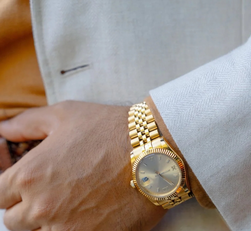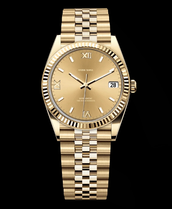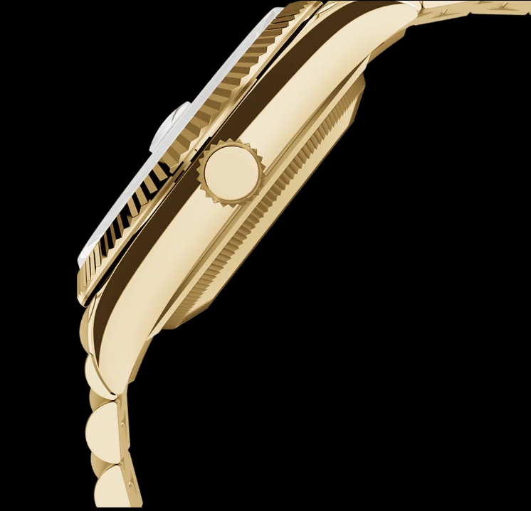 這款優雅的腕錶採用36毫米316不鏽鋼錶殼和錶鍊,皆採用金色色調。腕錶搭載可靠的石英機芯,配備日期顯示功能,並配有夜光琺瑯刻度和指針,即使在黑暗中也能清晰讀取時間。經典設計與現代功能的完美融合。