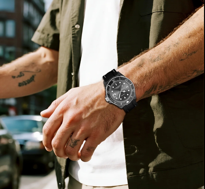 錶圈:單向旋轉,航空級碳纖維嵌件