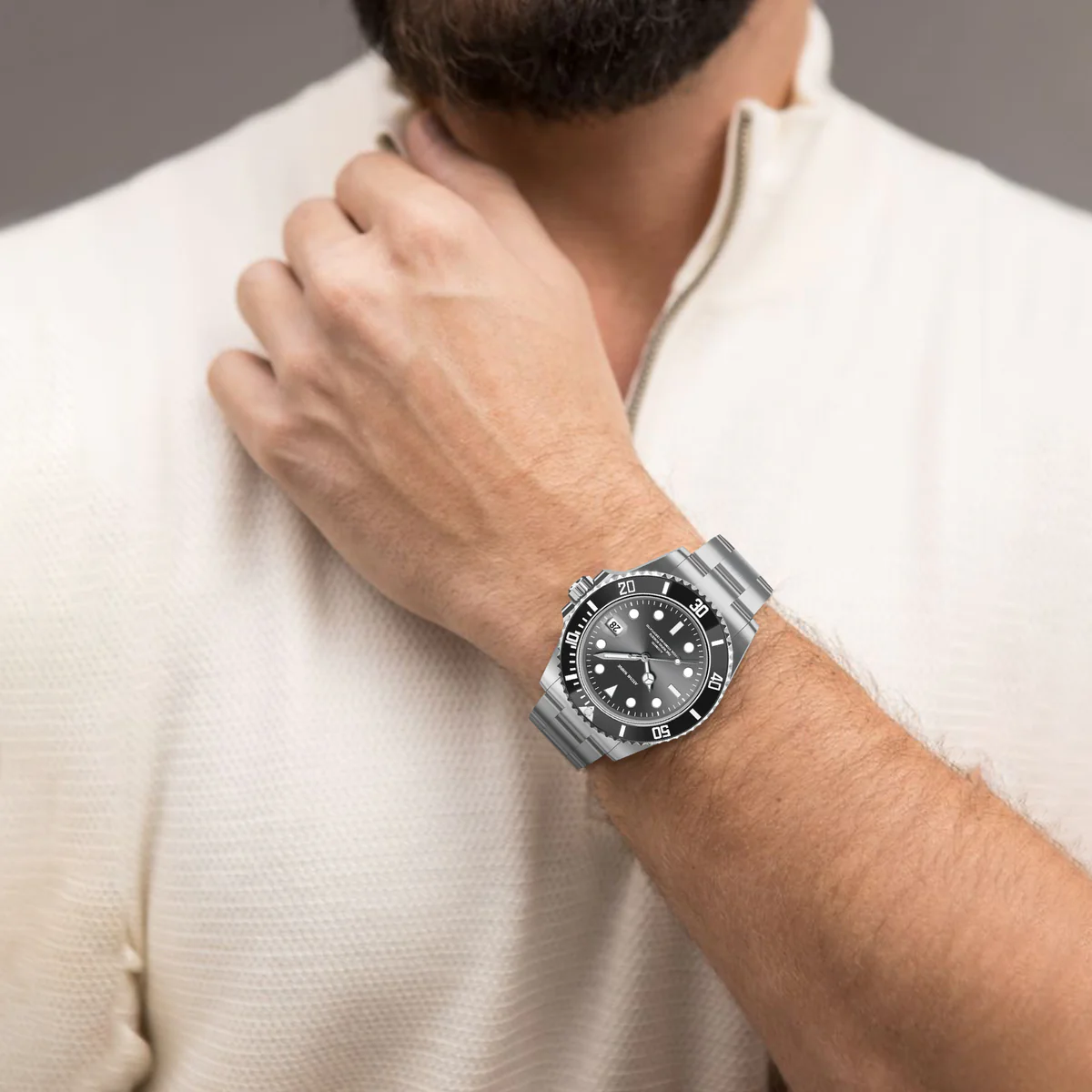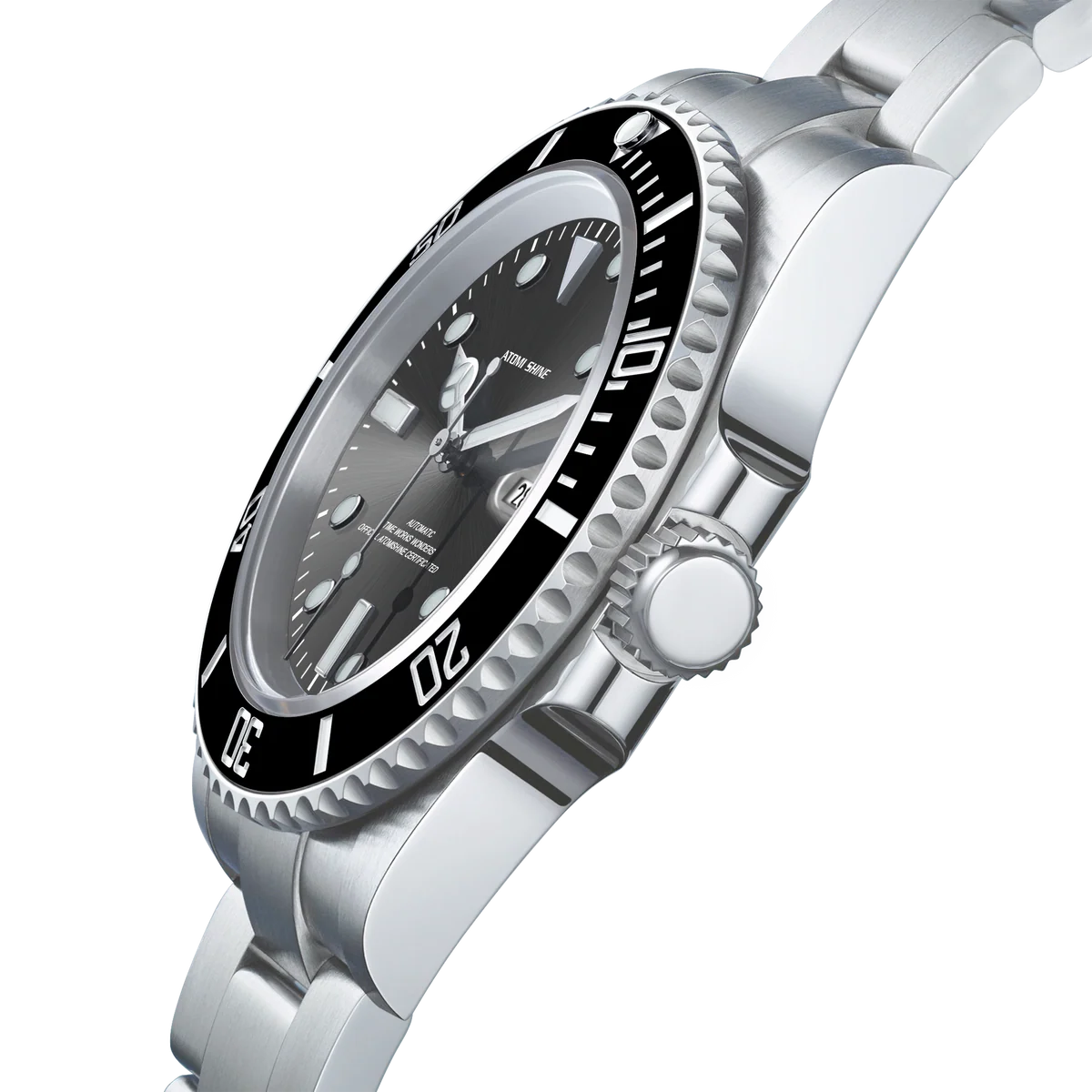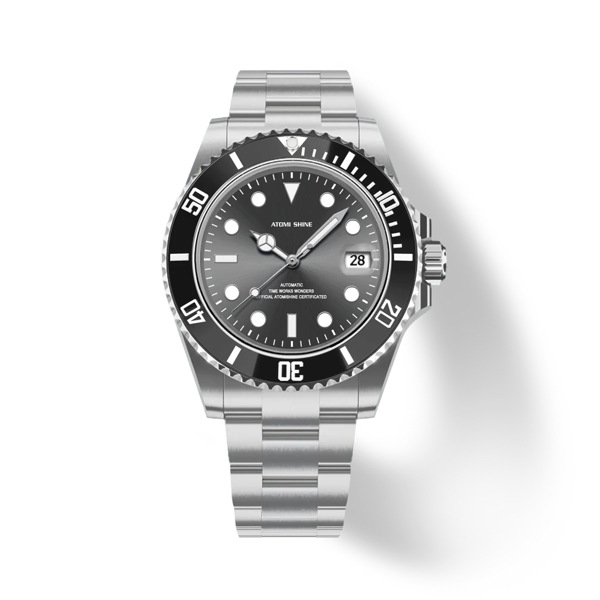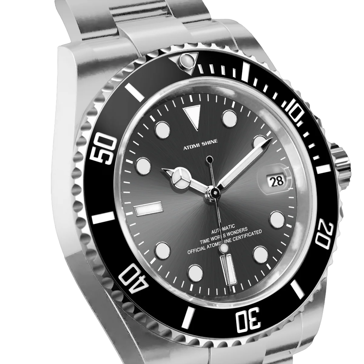 不鏽鋼錶殼和錶鍊彰顯力量,醒目的黑色錶圈環繞著太陽放射紋錶盤,每個角度都閃耀著璀璨光芒。醒目的時標和夜光指針確保在任何環境下清晰易讀,3點鐘位置的日期視窗則更顯實用功能。這款腕錶搭載自動上鍊機芯,防水性能卓越,展現深邃、耐用和雋永魅力。